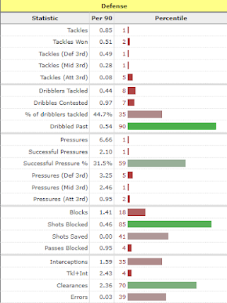 Well, his pressures per 90 have decreased season on season. His tackles attempted have decreased season on season. His aerial duel success dropped off dramatically last season too.